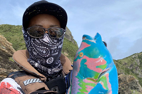 投稿された画像で目を引くのは、青、ピンク、緑といった色鮮やかな体色。この魚は「キヌベラ」というニシキベラの仲間ですが、ここまで大きく、色柄が鮮やかなものは珍しいようです。