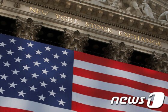 | 미국 성조기가 걸린 뉴욕증권거래소/로이터=뉴스1 |