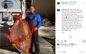 画像は『Michael MacTaggart 2020年11月11日付Instagram「Pending 143lb Opah Virginia State record I hand cranked offshore of VA at Norfolk Canyon on the “Relentless”.」』『WGHP FOX8 2020年11月11日付「Fishermen reel in 143-pound opah fish off Virginia coast」(Courtesy photo)』のスクリーンショット